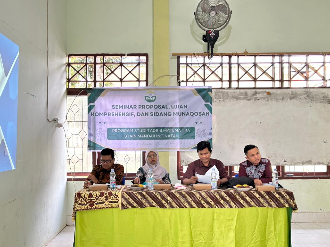 Panyabungan– Tiga mahasiswa angkatan pertama Program Studi Tadris Matematika (T.Mat) STAIN Mandailing Natal (Madina) sukses laksanakan seminar proposal skripsi perdana pukul 08.30 – 12.00 WIB. Ketiga mahasiswa angkatan 2022 tersebut; Mislaini, Nisma Hayati, dan Sofwatun Nabila, berhasil mempertahankan proposal skripsinya di hadapan empat dosen penguji terkait penelitian yang akan dilakukan. Seminar proposal (Sempro) skripsi yang berlangsung hari Selasa, 3 Februari 2026 di ruang 4.5 Gedung Lama ini menjadi moment penting bagi ketiga mahasiswa tersebut sekaligus menjadi “Momentum Awal” bagi seluruh mahasiswa angkatan tahun 2022 lainnya di Prodi Tadris Matematika untuk menyelesaikan studi di kampus STAIN Madina.