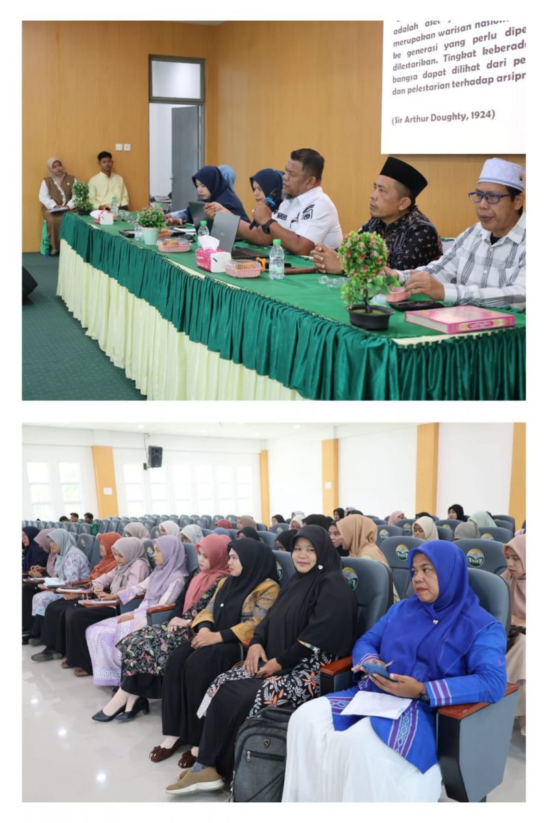 Dalam kegiatan tersebut, hadir sebagai pemateri Mukhtar Syaikhuddin Nasution, S.Pd., Kepala Bidang Pembinaan Pengelolaan dan Pengawasan Kearsipan Dinas Perpustakaan dan Kearsipan Pemerintah Kabupaten Mandailing Natal. Dalam pemaparannya, ia menjelaskan secara komprehensif berbagai aspek fundamental kearsipan, mulai dari konsep dan prinsip dasar kearsipan, klasifikasi serta retensi arsip, pengelolaan arsip dinamis dan statis, hingga implementasi sistem digital dalam proses pengarsipan. Selain itu, peserta memperoleh pemahaman mendalam mengenai prosedur penyimpanan, pemeliharaan, dan pemusnahan arsip yang dilakukan secara terencana dan sesuai dengan ketentuan peraturan perundang-undangan yang berlaku.