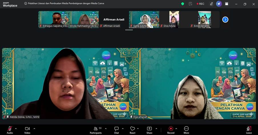 Ketua pelaksana kegiatan, Wisda Rahmadinur, S.Psi., M.Pd, dalam sambutannya menyampaikan bahwa kegiatan ini bertujuan untuk membekali mahasiswa—khususnya dari Program Studi Pendidikan Guru Madrasah Ibtidaiyah (PGMI) dan Pendidikan Agama Islam (PAI)—dengan keterampilan literasi digital dan kemampuan mendesain media pembelajaran yang kreatif dan inovatif.