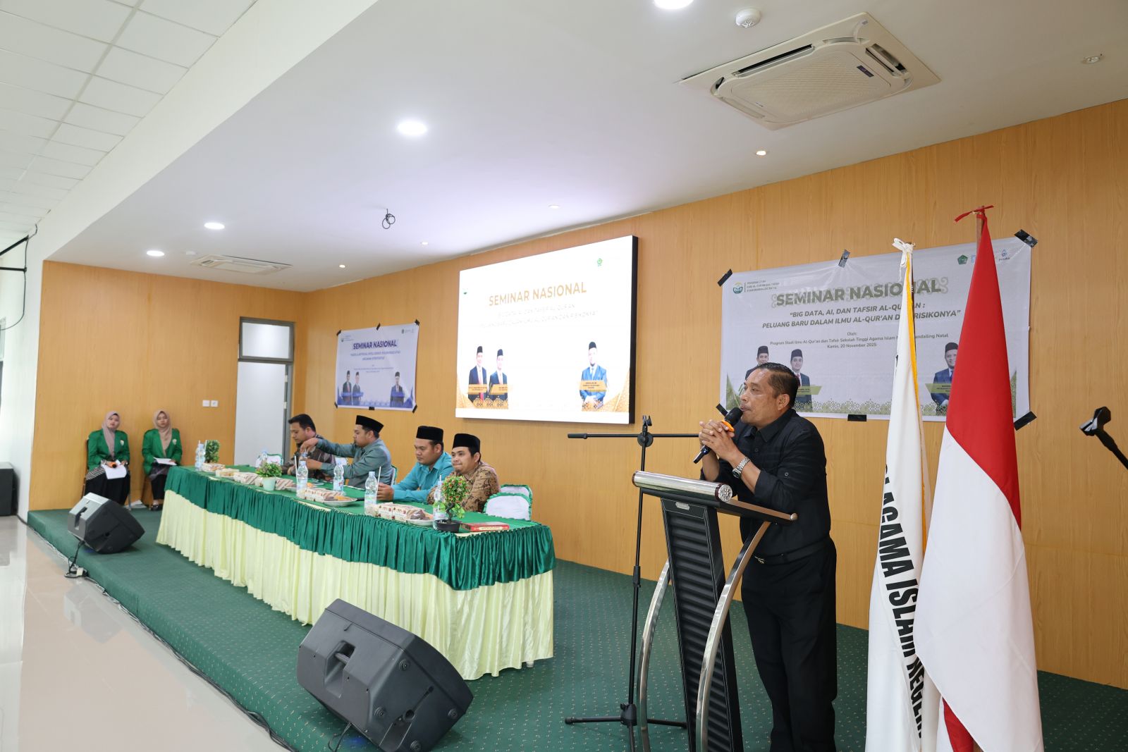 Acara dibuka resmi oleh Wakil Ketua III bidang Kemahasiswaan dan Kerjasama, yang dalam sambutannya menegaskan bahwa mahasiswa harus siap menghadapi era digital tanpa kehilangan integritas keilmuan. Ketua Prodi Ilmu Al-Qur’an dan Tafsir, Amiruddin, M.Th, turut memberikan apresiasi kepada panitia, narasumber, para dosen, serta mahasiswa. Ia menekankan bahwa pemanfaatan teknologi harus tetap selaras dengan prinsip-prinsip keilmuan tafsir yang telah diwariskan para ulama.