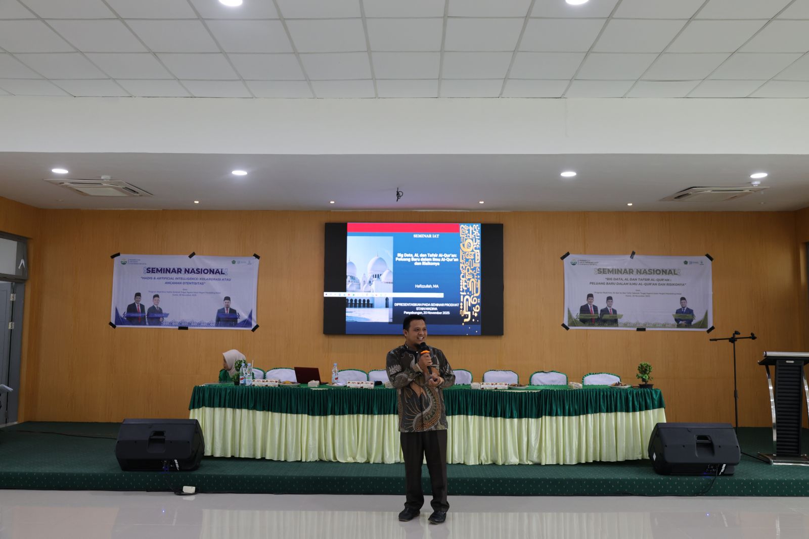 Seminar ini menghadirkan narasumber dari UIN Mahmud Yunus Batusangkar, Hafizullah, M.A., yang dikenal aktif mengkaji integrasi teknologi dalam tafsir kontemporer. Materi yang dibawakan tidak hanya komprehensif, tetapi juga membuka cakrawala baru tentang bagaimana big data dan AI dapat memperkaya metode penafsiran, sekaligus risiko yang harus diwaspadai agar otoritas tafsir tetap terjaga.