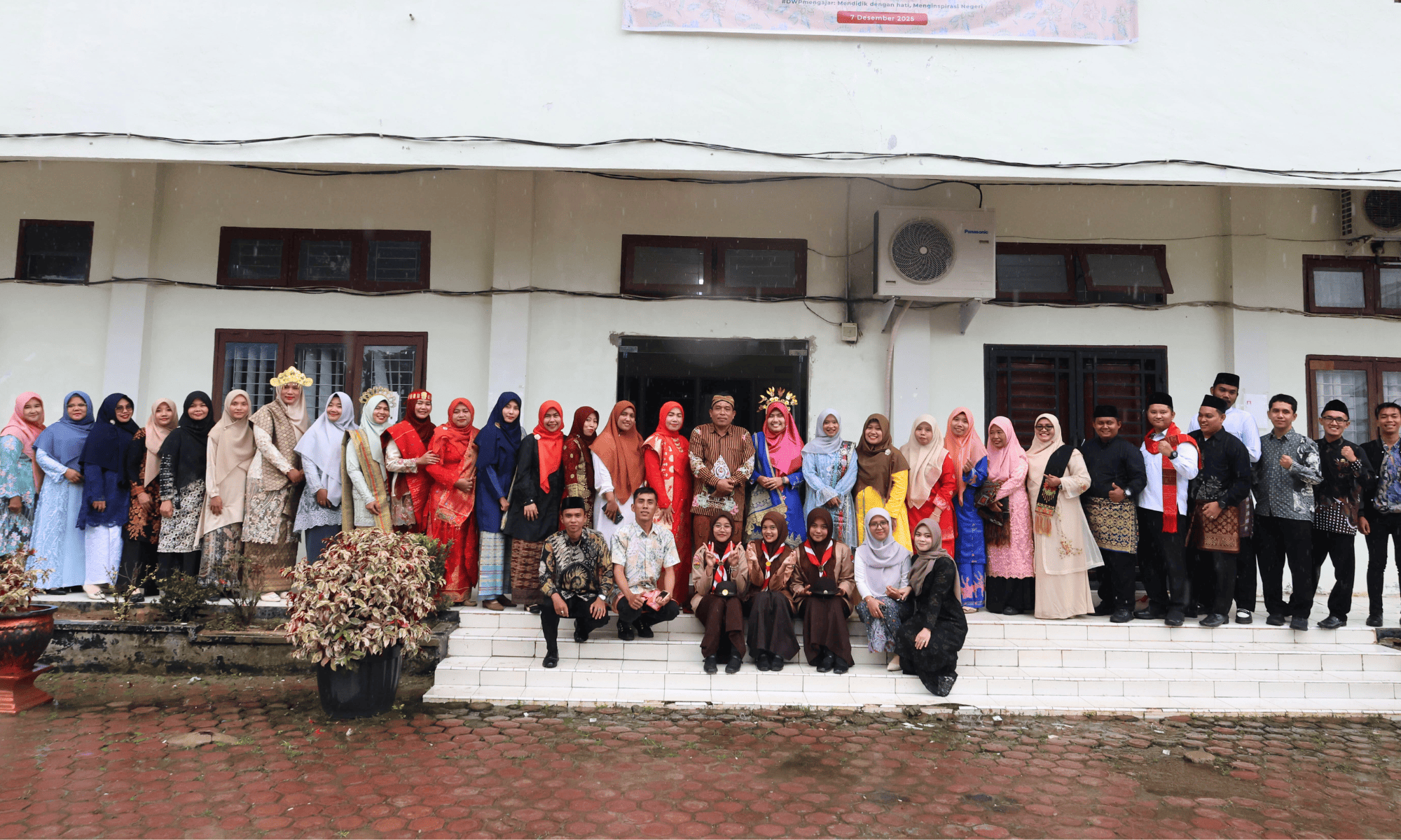 Para peserta yang mengenakan pakaian adat Nusantara menjadikan upacara semakin berwarna. Keberagaman busana tradisional yang ditampilkan merepresentasikan kekayaan budaya Indonesia dan mempertegas bahwa pendidikan tumbuh dan berlandaskan pada nilai kebinekaan.